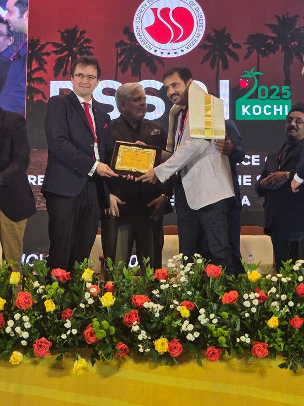 Receiving the National Award for Innovation in Diabetes Care(Technology) from the President of International Diabetes Federation, Dr Peter Shwartz.
